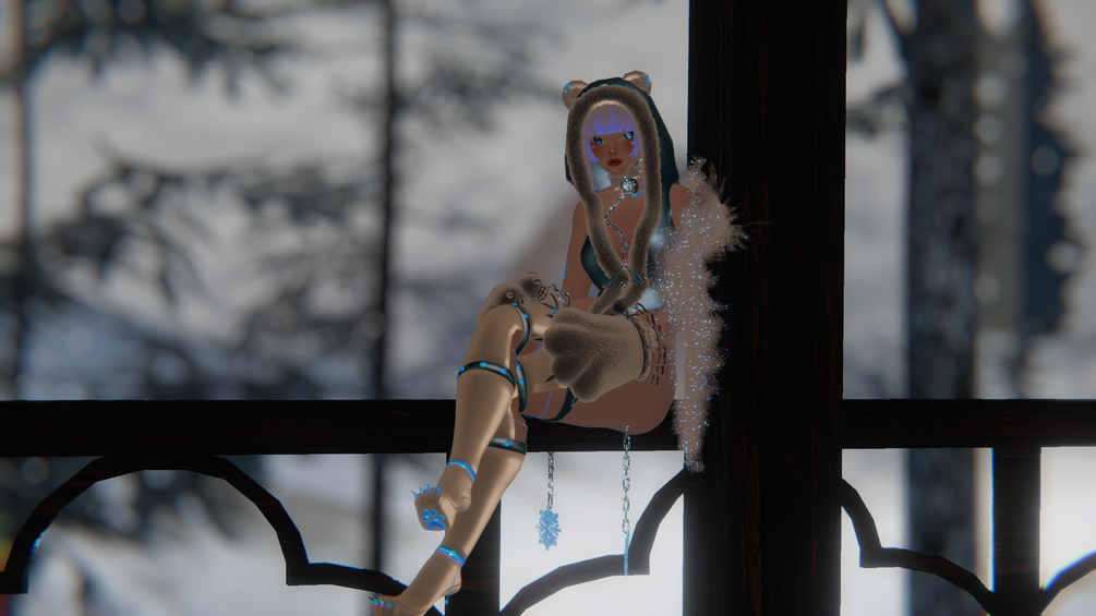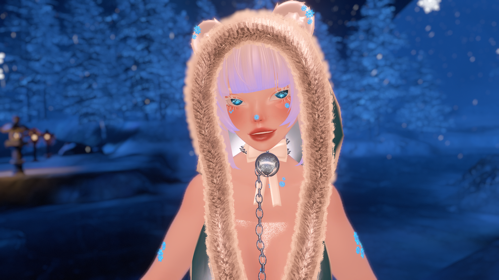 BOA, BODY, HEAD, HAIR, SNOWFLAKES, BEAR EARS, TAIL, BODYSUIT, COOKIE, ARM CHAINS, LEASH, PAWS, BOOTS, BREATH AND HAND TRAILS, SNOWFALL PARTICLES, VIDEO, DANCER