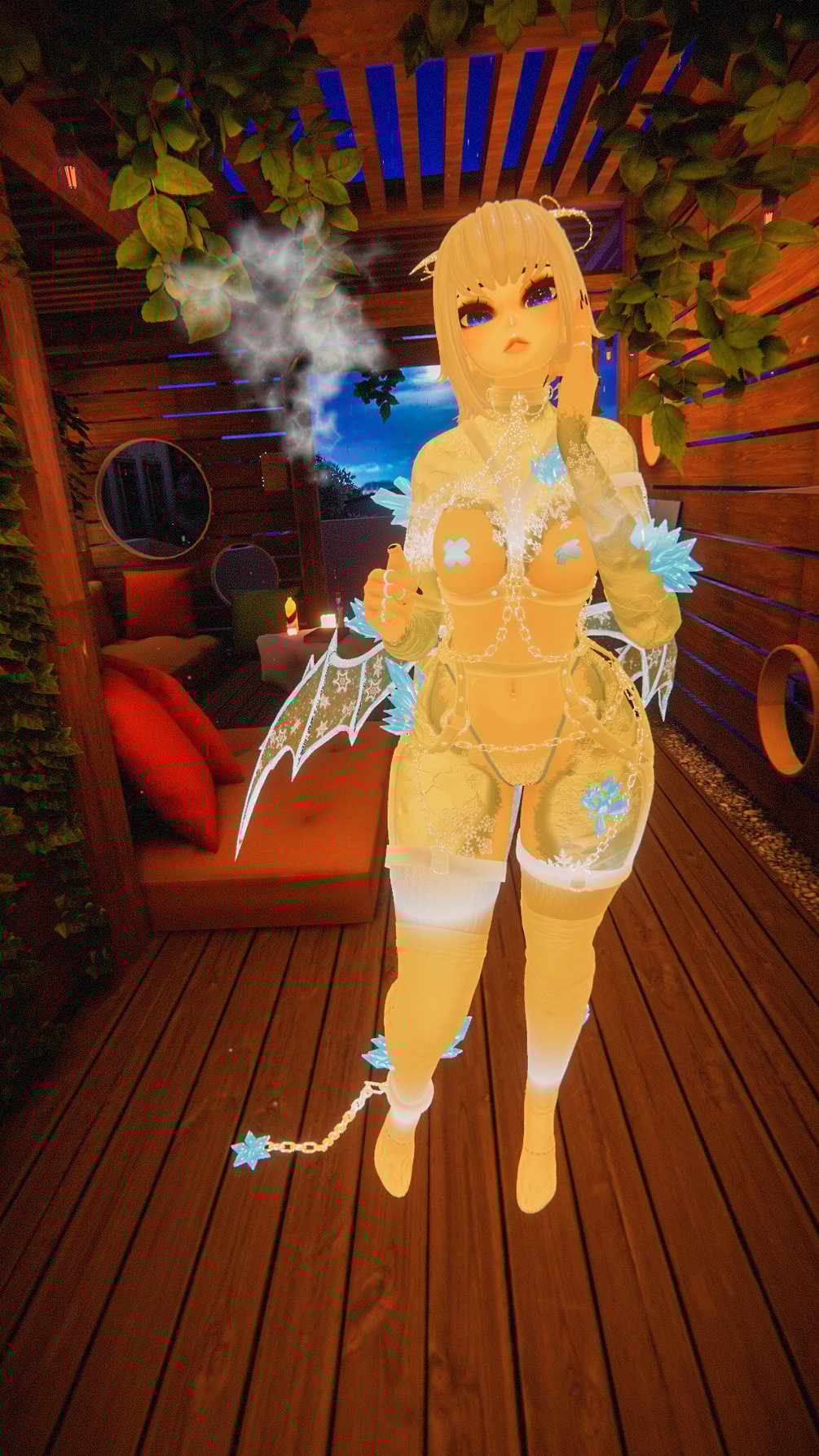 - Clothing Dissolves; Chain Harness, Cloak, Crystals, Leather Harness, Spicy Bottoms, X Coverings, Tail, Wings.